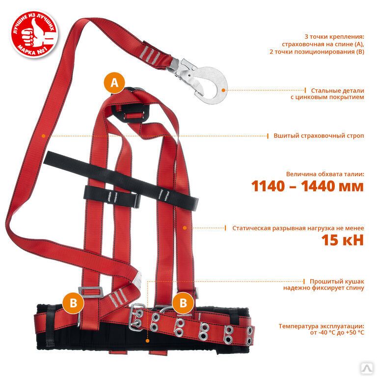 Лямочный пояс «ЗУБР» – надежное средство защиты от падения с высоты.