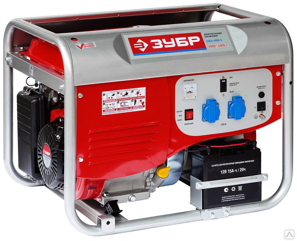 Читать все статьиБензиновый генератор с электростартером, 4000 Вт, ЗУБР