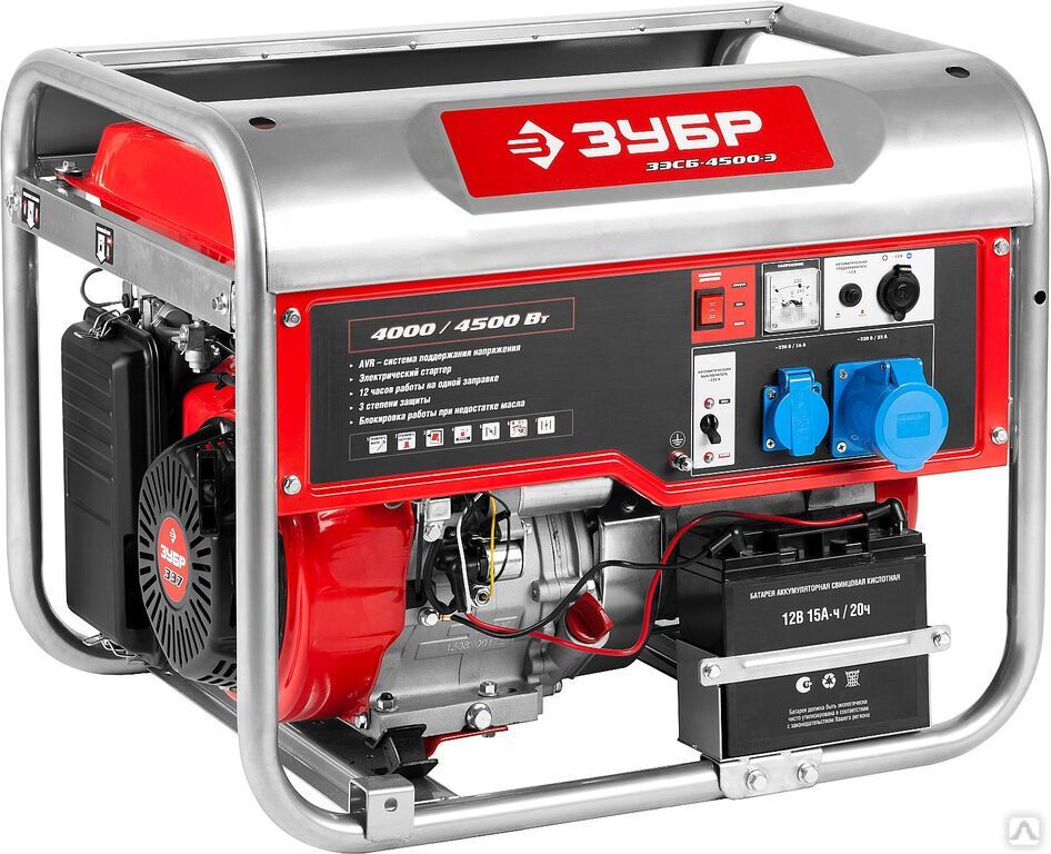 Читать все статьиБензиновый генератор с электростартером, 4500 Вт, ЗУБР