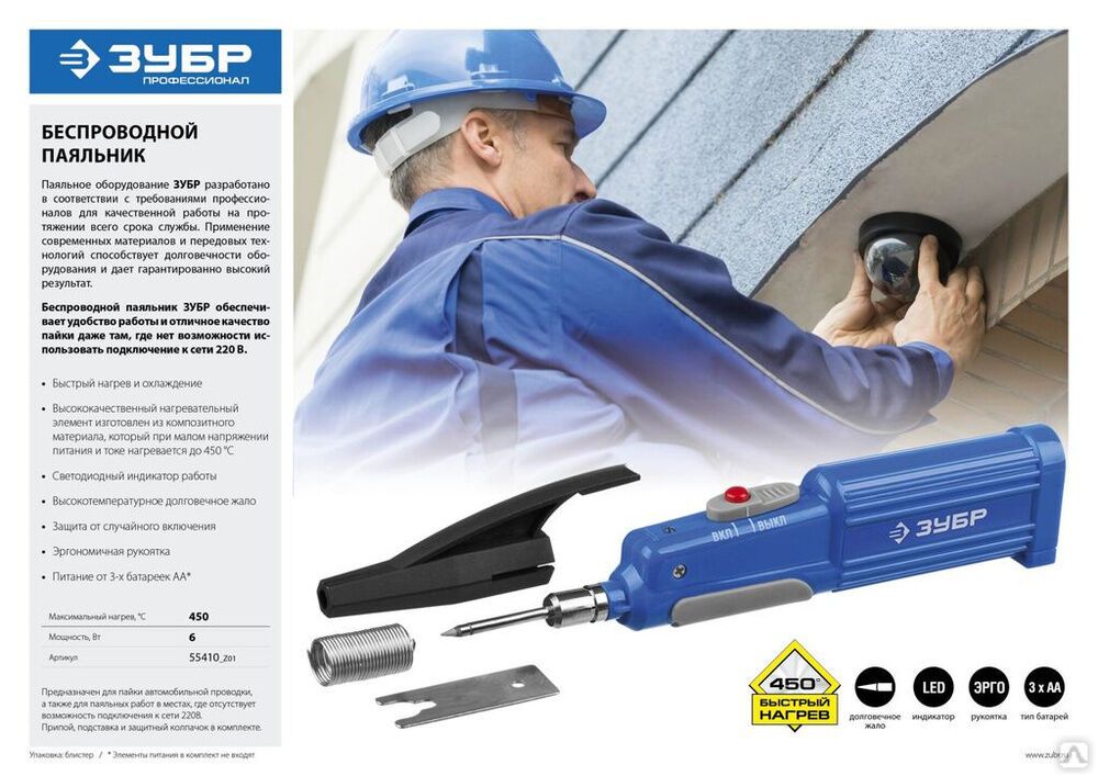 Читать все статьиБеспроводной паяльник ЗУБР 6Вт, высокотемпературное жало, 3AA, конус