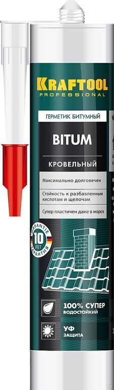 Рекомендуется для работ при монтаже и ремоте кровли. Не пригоден для окрашивания. Герметик ″БИТУМНЫЙ″ KRAFTOOL идеален для выполнения высококачественных работ при: - уплотнении и герметизации соединений между битумными рулонами, а также между битумными рулонами и бетонными конструкциями, - уплотнении и герметизации швов между металлическими листами кровли, - герметизации кровельных желобов и водосточных труб.