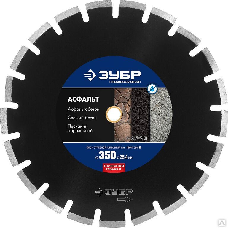 Читать все статьиДиск алмазный отрезной АСФАЛЬТ 350 мм по асфальту, ЗУБР Профессионал