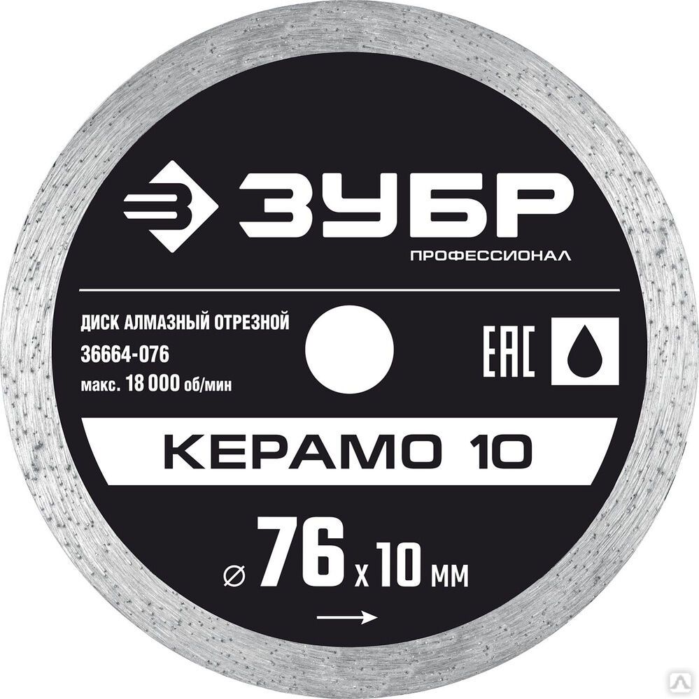 Читать все статьиДиск алмазный отрезной КЕРАМО-10 76 мм сплошной, ЗУБР Профессионал