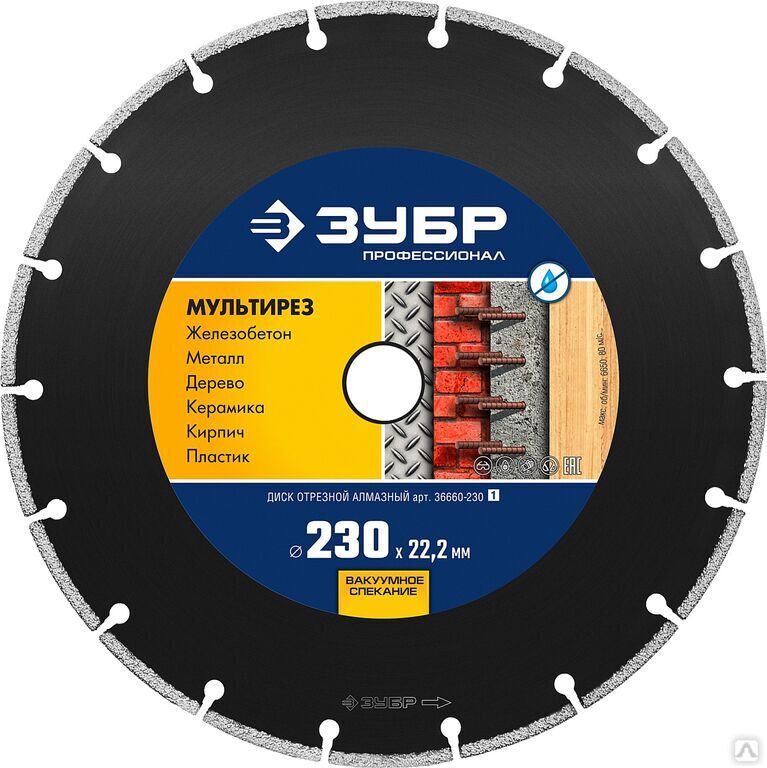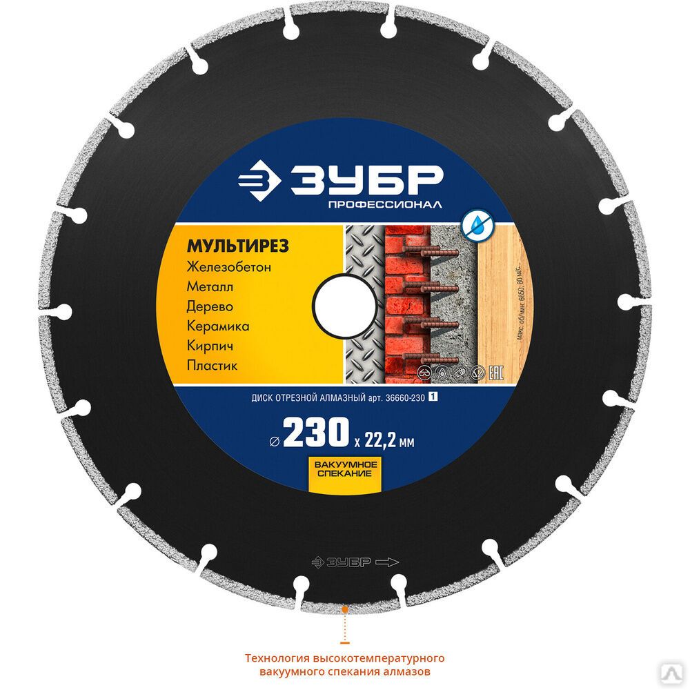 Читать все статьиДиск алмазный отрезной МУЛЬТИРЕЗ 230 мм универсальный, ЗУБР Профессионал