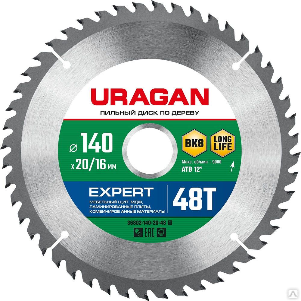Читать все статьиДиск пильный по дереву URAGAN Expert 140х20/16 мм 48Т