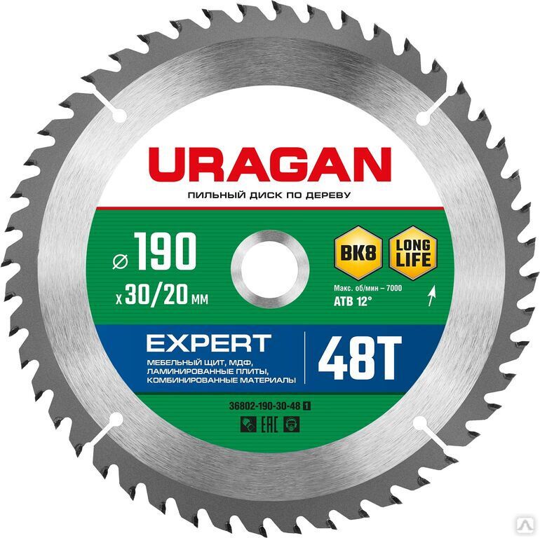Читать все статьиДиск пильный по дереву URAGAN Expert 190х30/20 мм 48Т