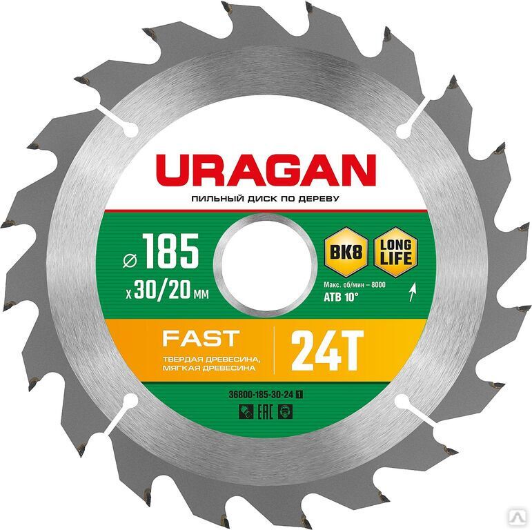Читать все статьиДиск пильный по дереву URAGAN Fast 185x30/20 мм 24Т