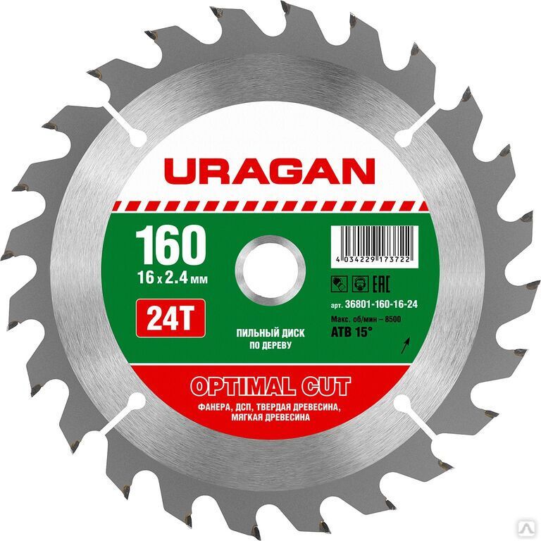 Читать все статьиДиск пильный по дереву URAGAN Optimal cut 160х16 мм 24Т