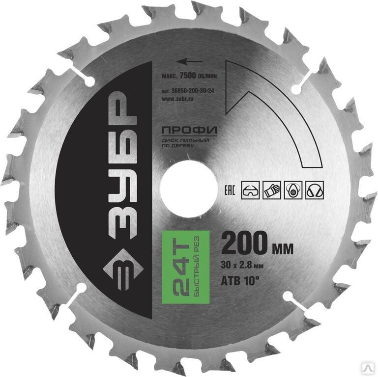 Читать все статьиДиск пильный по дереву ЗУБР Быстрый рез 200х30 мм 24Т
