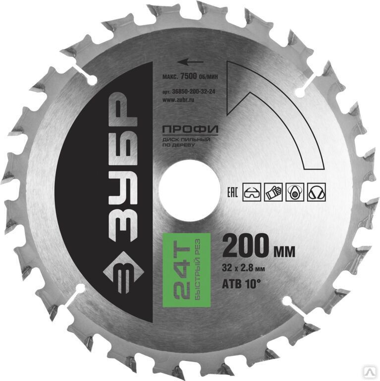 Читать все статьиДиск пильный по дереву ЗУБР Быстрый рез 200х32 мм 24Т