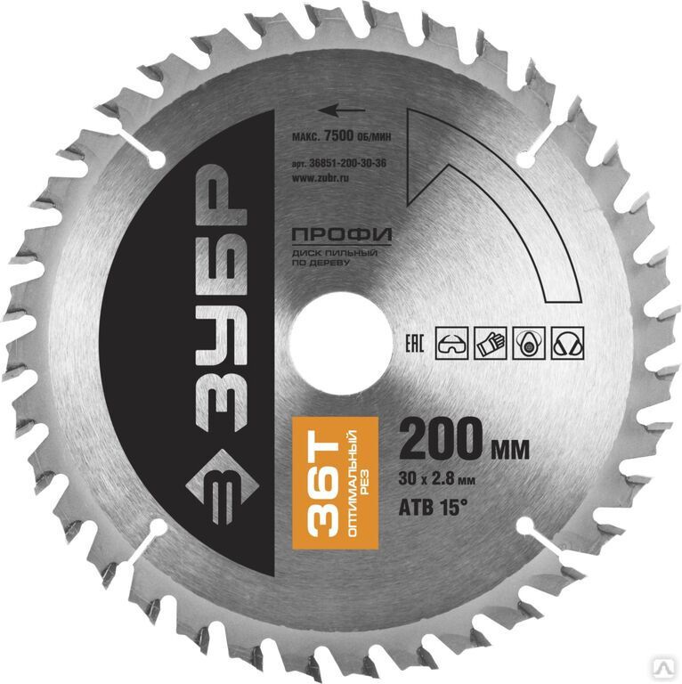 Читать все статьиДиск пильный по дереву ЗУБР Оптимальный рез 200х30 мм 36Т