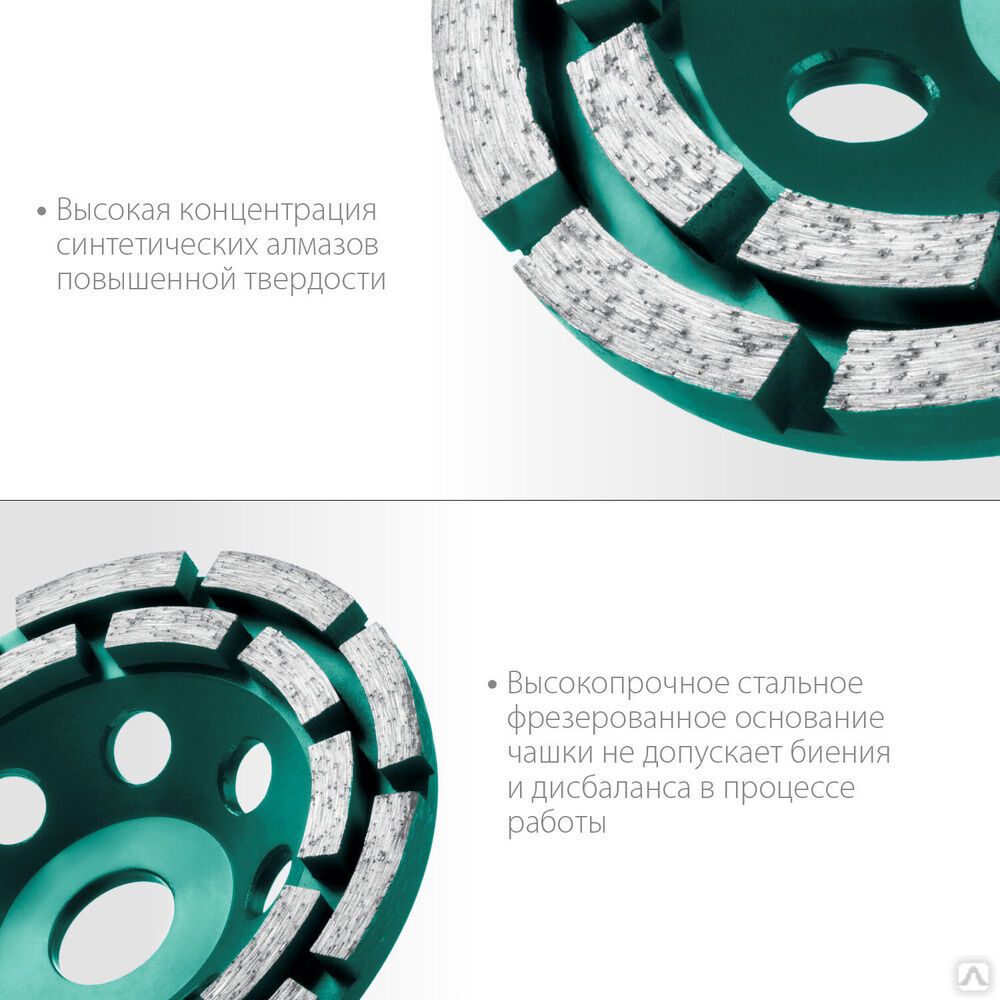 Два ряда алмазных сегментов для равномерного шлифования и большого объема работ.