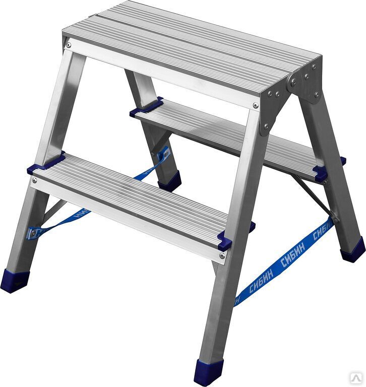 Читать все статьиДвухсторонняя стремянка СИБИН, алюминиевая, 2 ступени