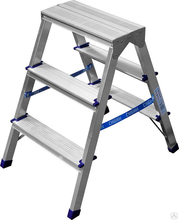 Читать все статьиДвухсторонняя стремянка СИБИН, алюминиевая, 3 ступени