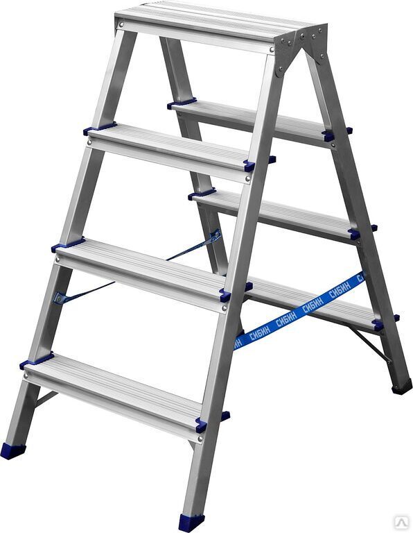 Читать все статьиДвухсторонняя стремянка СИБИН, алюминиевая, 4 ступени