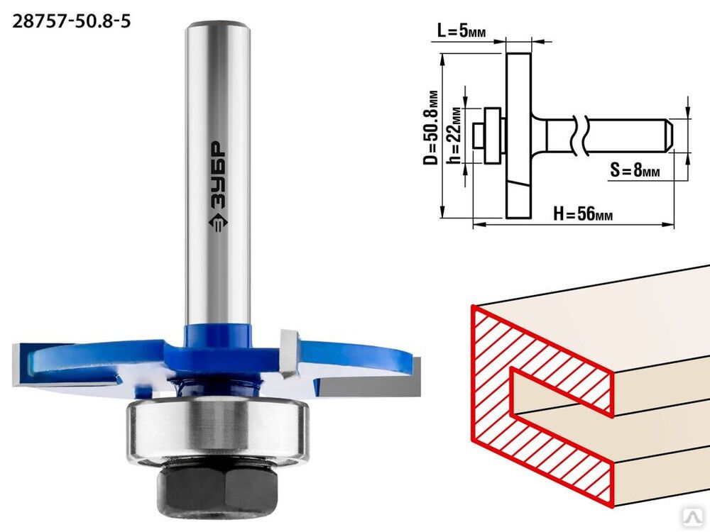 Читать все статьиФреза горизонтально-пазовая ЗУБР 50,8x5 мм, хвостовик 8 мм