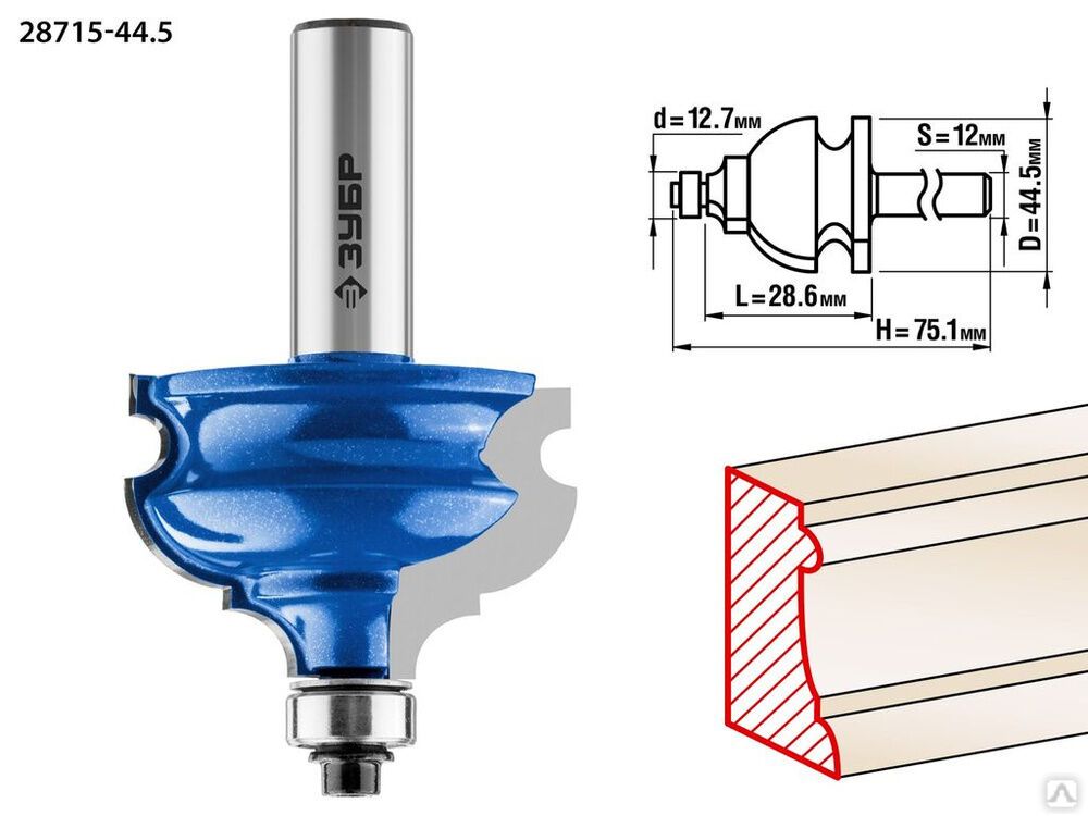 Читать все статьиФреза кромочная фигурная №4 ЗУБР 44,5x28 мм, хвостовик 12 мм