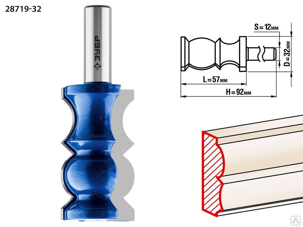 Читать все статьиФреза кромочная фигурная №8 ЗУБР 32x57 мм, хвостовик 12 мм