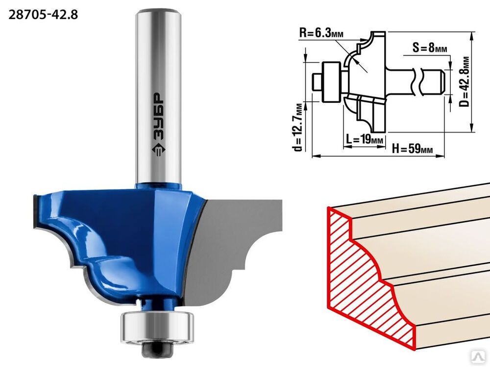 Читать все статьиФреза кромочная калевочная №4 ЗУБР 42,8x19 мм, радиус 63 мм
