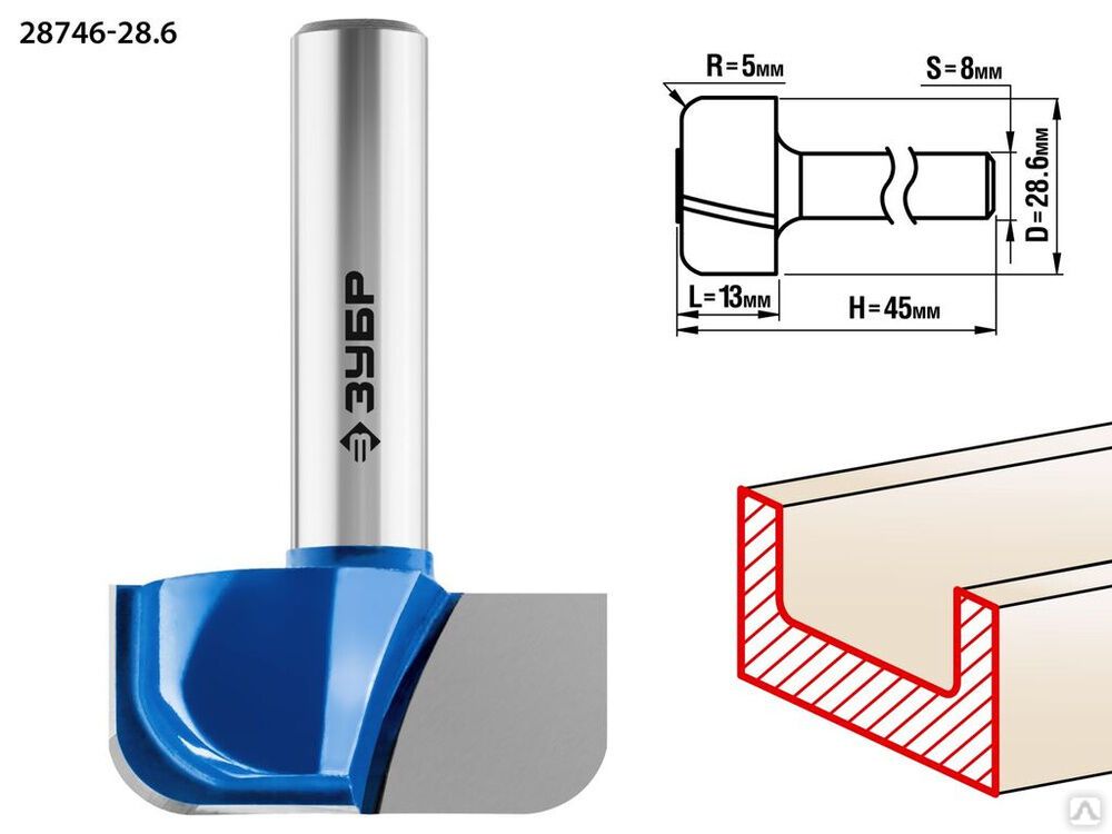 Читать все статьиФреза пазовая фасонная №7 ЗУБР 28,6x13 мм, радиус 5 мм