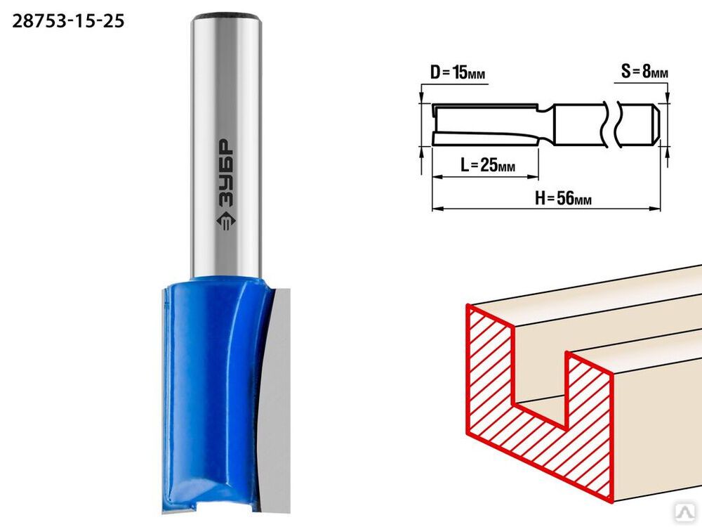 Читать все статьиФреза пазовая прямая ЗУБР 15x25 мм, хвостовик 8 мм