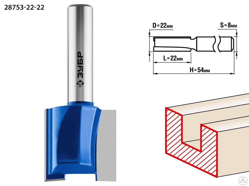 Читать все статьиФреза пазовая прямая ЗУБР 22x22 мм, хвостовик 8 мм