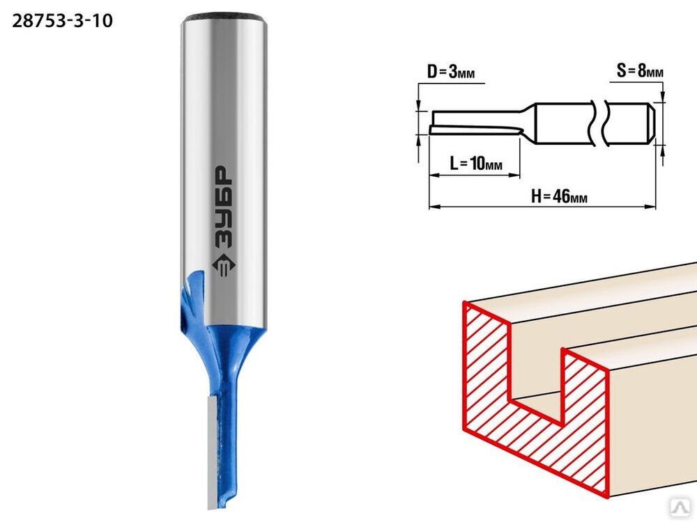 Читать все статьиФреза пазовая прямая ЗУБР 3x10 мм, хвостовик 8 мм