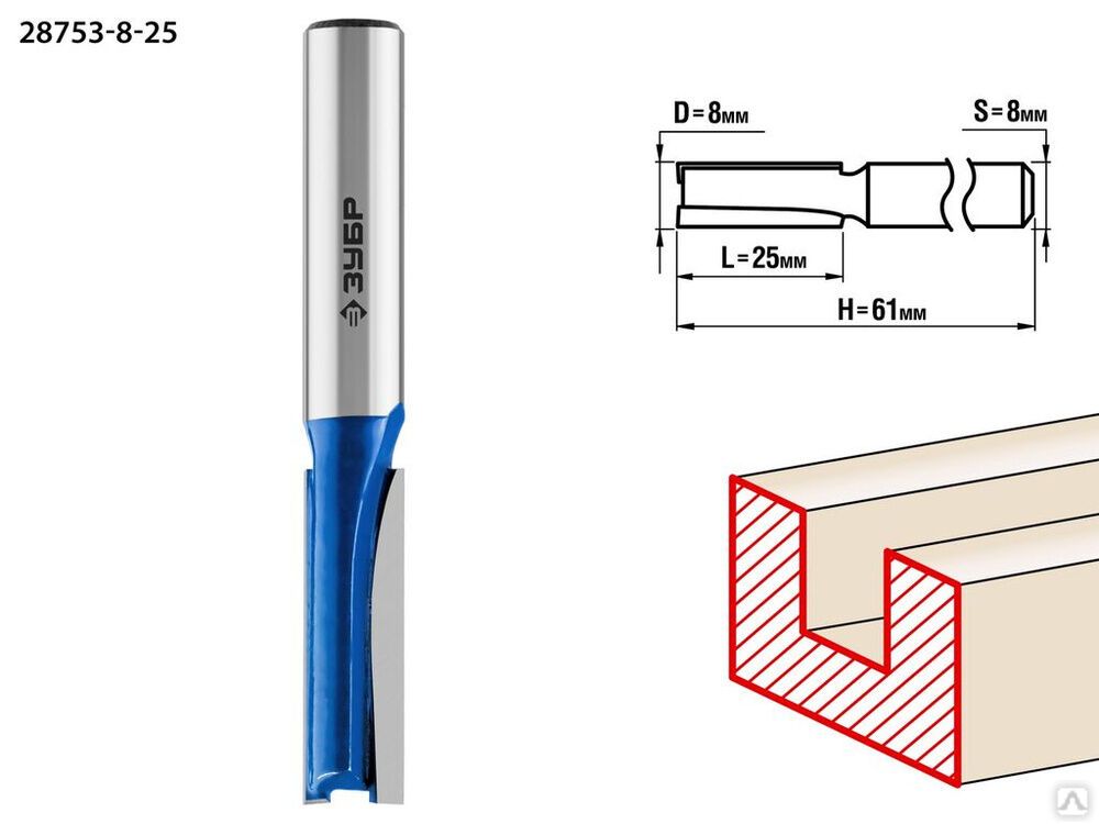 Читать все статьиФреза пазовая прямая ЗУБР 8x25 мм, хвостовик 8 мм