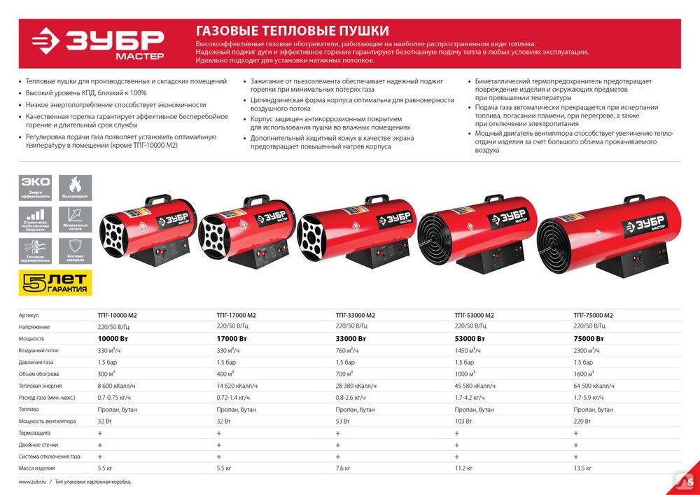 Читать все статьиГазовая тепловая пушка ЗУБР, 33 кВт