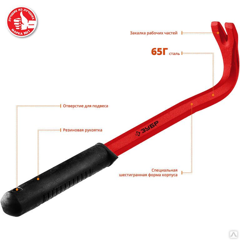 Профессиональный инструмент для демонтажных работ «ЗУБР» выдерживает длительные высокие нагрузки, обладает высоким ресурсом, имеет длительный срок службы и обеспечивает качественную работу.