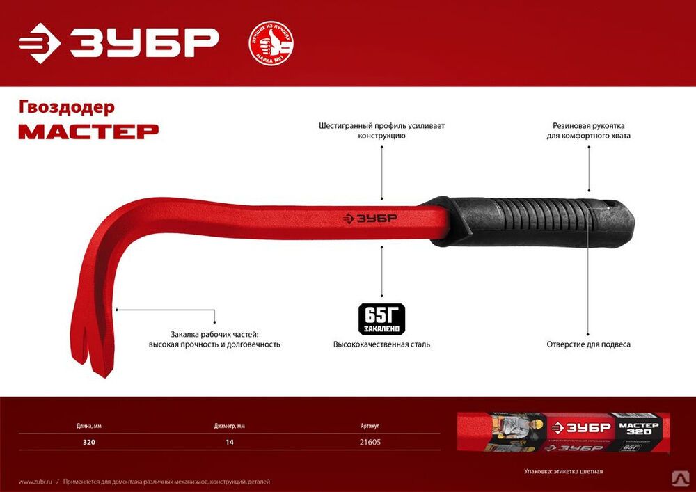 Читать все статьиГвоздодер с рукояткой, 320 мм, ЗУБР