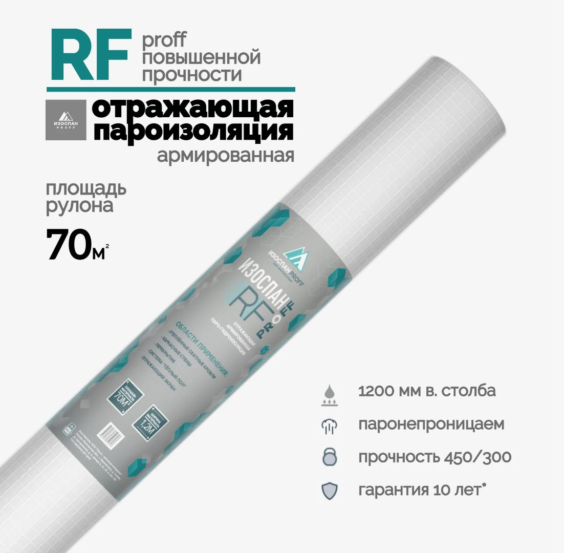 Изоспан RF — энергосберегающая отражающая пароизоляция, многослойный материал, выполненный из полипропиленового нетканого полотна и металлизированной полипропиленовой плёнки, армированных сеткой для достижения высокой прочности.