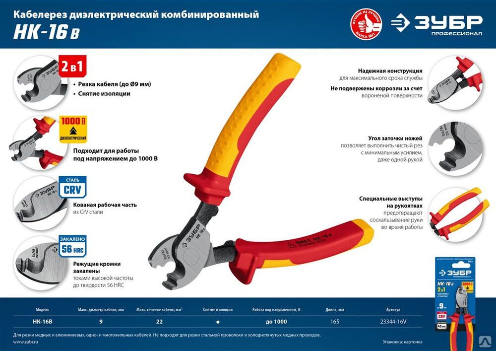 Читать все статьиКабелерез диэлектрический, ЗУБР Профессионал НК-16В