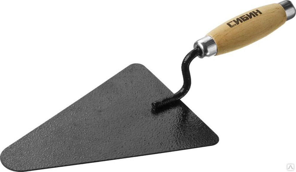 кельма используется для нанесения строительных растворов, стальное полотно обеспечивает прочность конструкции, а деревянная ручка удобство в работе