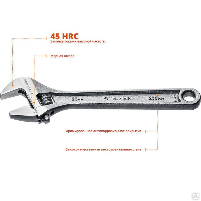 Читать все статьиКлюч разводной MAX-Force, 200 / 25 мм, STAYER