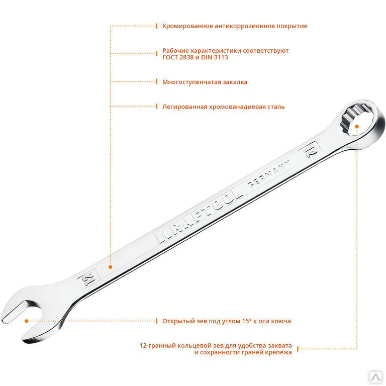 Читать все статьиКомбинированный гаечный ключ 12 мм, KRAFTOOL