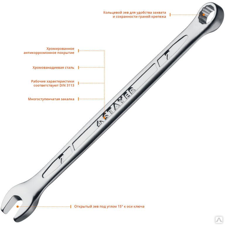 Читать все статьиКомбинированный гаечный ключ 7 мм, STAYER HERCULES