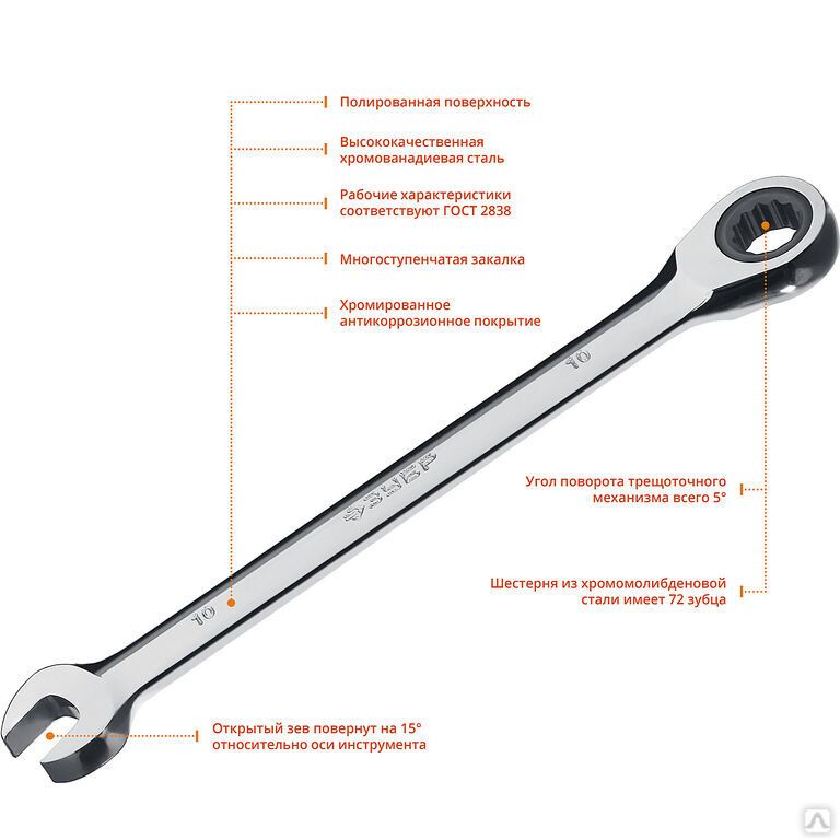 Читать все статьиКомбинированный гаечный ключ трещоточный 10 мм, ЗУБР