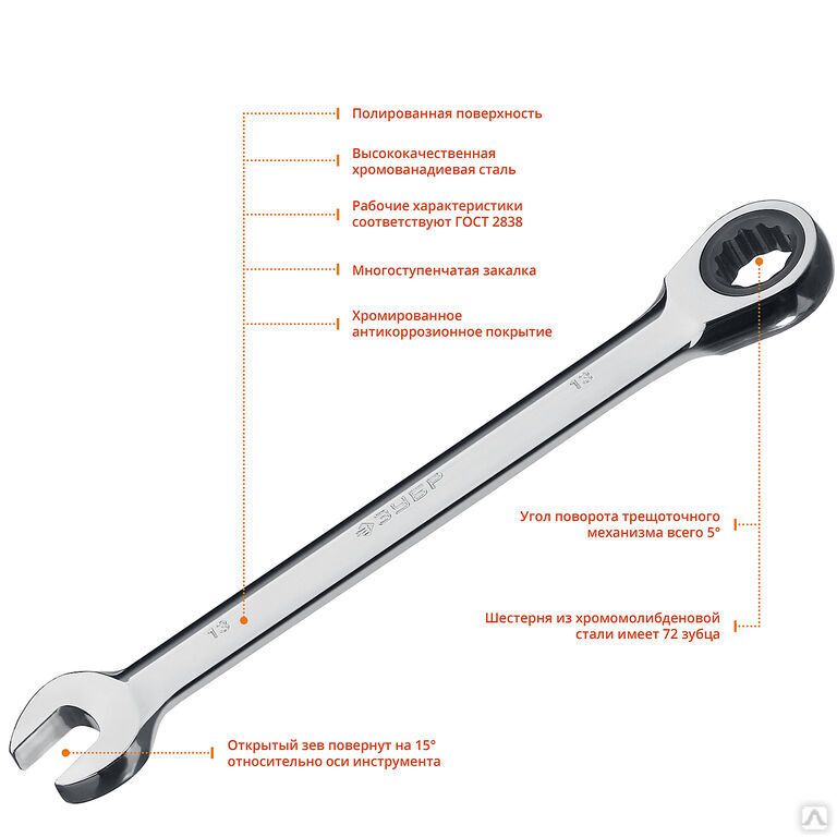 Читать все статьиКомбинированный гаечный ключ трещоточный 13 мм, ЗУБР