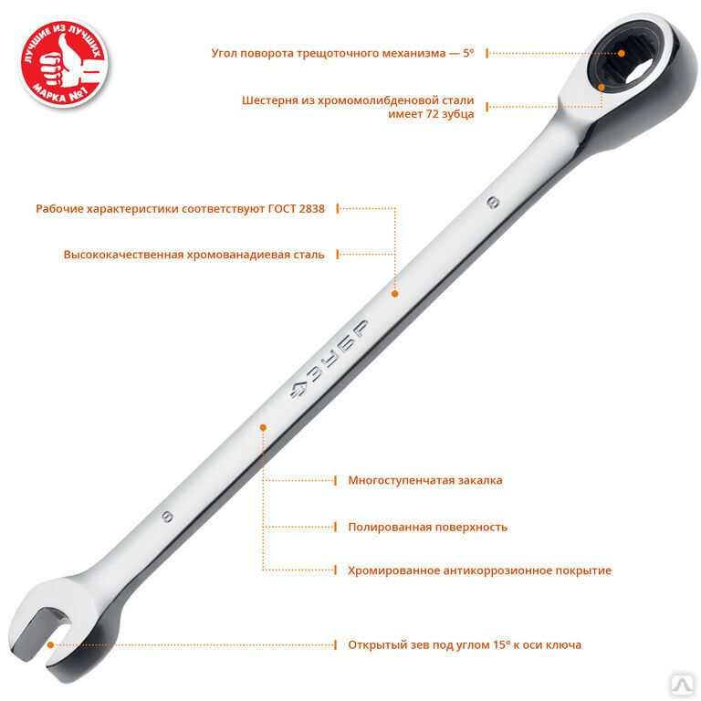 Читать все статьиКомбинированный гаечный ключ трещоточный 8 мм, ЗУБР