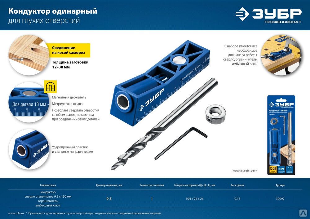 Читать все статьиКондуктор МИНИ одинарный для глухих отверстий, одно отверстие ЗУБР