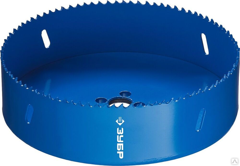 Читать все статьиКоронка биметаллическая, быстрорежущая сталь ЗУБР 152 мм
