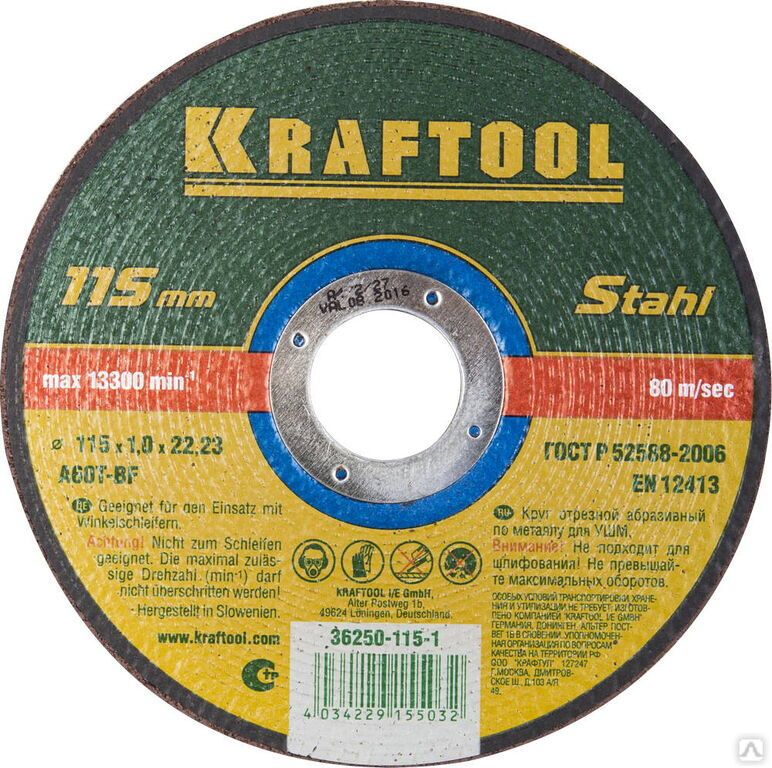 Читать все статьиКруг отрезной по металлу, 115x1,0x22,23 мм, KRAFTOOL