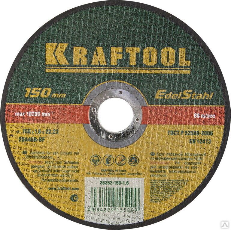 Читать все статьиКруг отрезной по нерж стали, 150x1,6x22,23 мм, KRAFTOOL