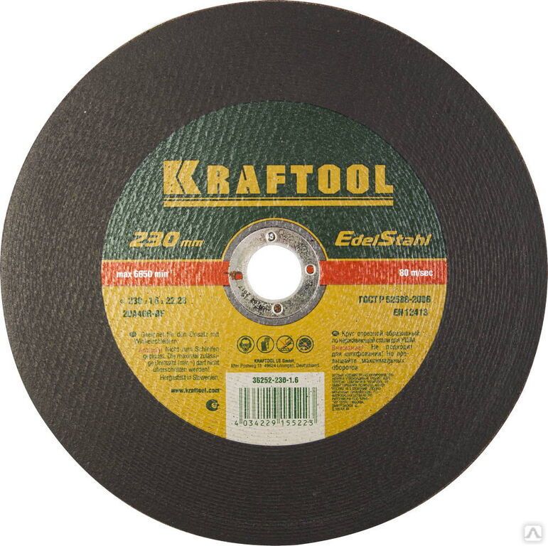 Читать все статьиКруг отрезной по нерж стали, 230x1,6x22,23 мм, KRAFTOOL