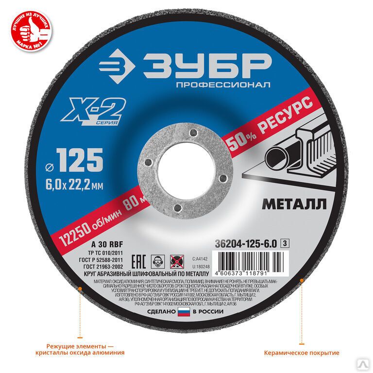 Читать все статьиКруг шлифовальный X-2 по металлу, 125х6х22,23 мм, ЗУБР