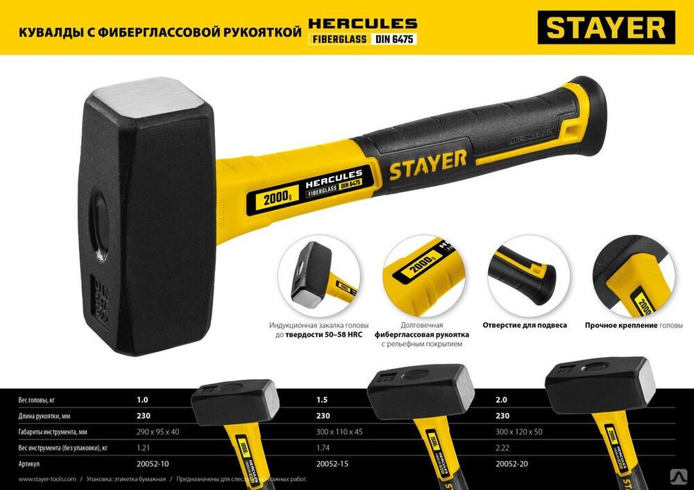 Читать все статьиКувалда с фиберглассовой рукояткой STAYER Hercules 1,5 кг