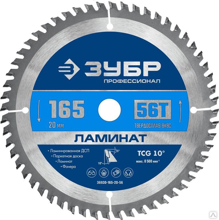 Читать все статьиЛаминат 165х20 мм 56Т, диск пильный по ламинату ЗУБР