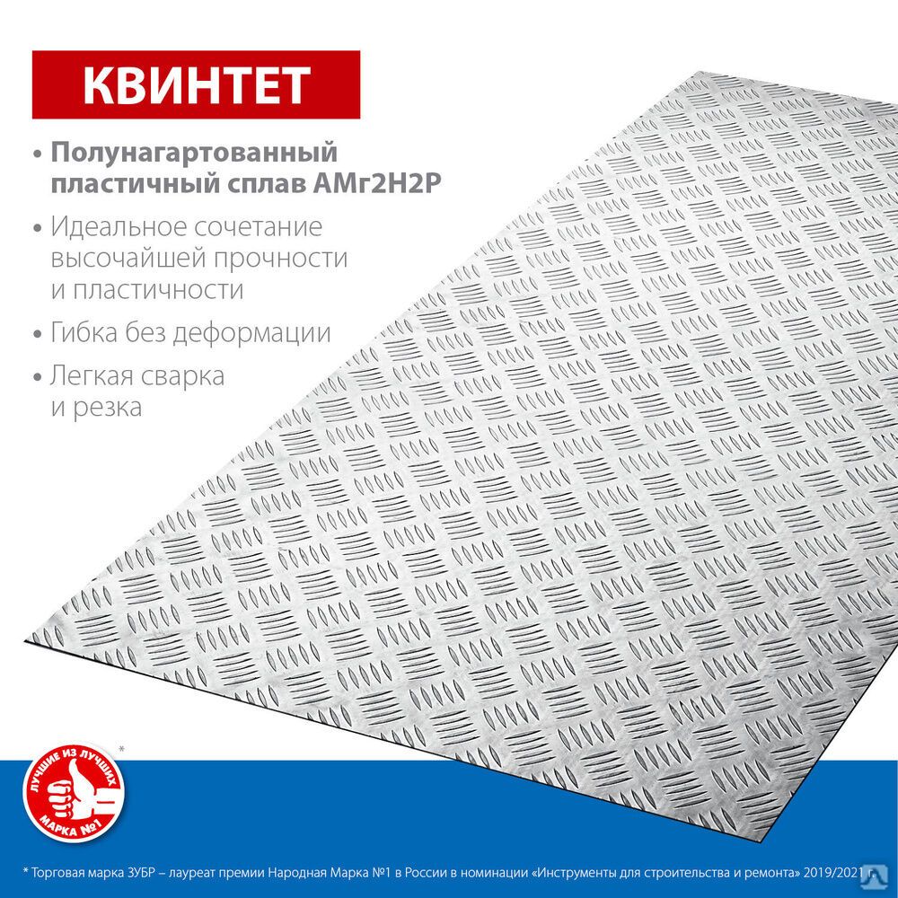 Читать все статьиЛист рифленый алюминиевый ЗУБР Квинтет 600х1200 х1,5 мм