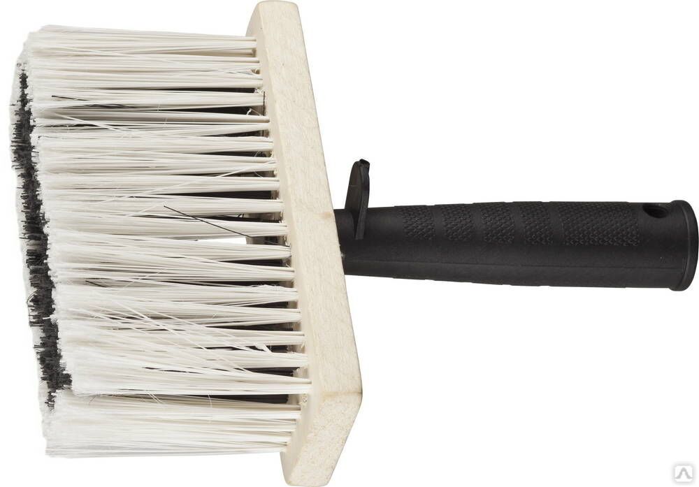 Отличное решение для работы со всеми типами ЛКМ, а так же грунтовки, побелки на большие поверхности, клеевых составов на обои, размывки потолков. Щетина кисти надежно закреплена в деревянной основе, а наличие удобной пластмассовой рукоятки обеспечит комфортную работу